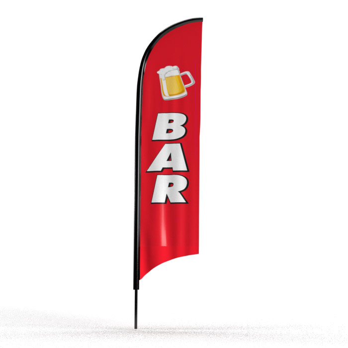 Notre drapeau publicitaire « BAR » est la solution de signalétique parfaite pour signaler votre établissement de manière moderne et percutante. Que vous dirigiez un bar, un pub, un café ou un restaurant, cet oriflamme (ou beach flag) est un investissement malin pour transformer les passants en clients.