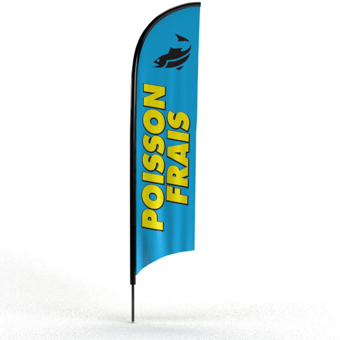 Robuste pour un Usage Quotidien : Fabriqué pour résister aux conditions extérieures, y compris près du littoral, notre oriflamme pour poissonnier est durable et facile à entretenir, pour une communication impeccable jour après jour.
